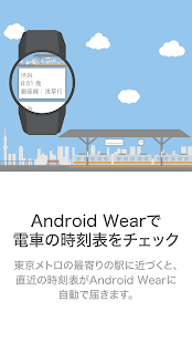「めぐトロ」なら現在いる位置から一番近い東京メトロの駅に近づくだけで、あなたのAndroid Wearに発車が近い電車の時刻を自動でお届けします。腕につけたAndroid Wearをさっと見るだけで手間なく発車時刻を確認することができ、わざわざスマートフォンで時刻表を確認する必要がなくなります。