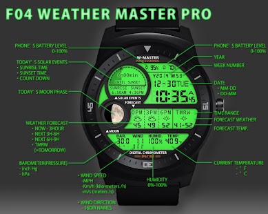 * F04 WATCHFACE MAKES NO GUARANTEE OF VALIDITY OF WEATHER.