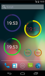 Beautiful widget that displays the time both as a digital clock and (optionally) as two colorful circles representing hours and minutes. The widget can be freely resized to any size you desire.