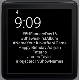 Trending Tijd werd gebouwd als een pedagogisch instrument voor ontwikkeling met het Android Wear Kijk Face API en ook als een entertainment programma - het spul dat verschijnt gedurende de dag kan echt grappig en vaak zeer informatief zijn. De les hier is dat horloge gezichten niet altijd voor iedereen over het uitdrukken van de tijd zelf - de nadruk voor deze app is op de data, niet de tijd.