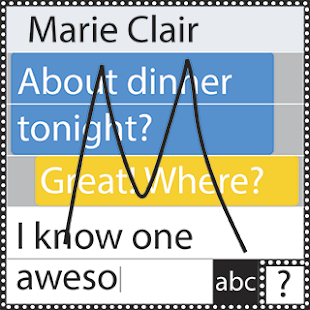 시계 EWriting에서는 그리기 심볼 전체 화면 표면을 사용 - 하나를 한 번에. 그리는 동안, 당신은 동시에 당신이 입력 필드를 포함하여 APP의 모든 분야를 관찰합니다. 이 스마트 시계 화면에서 매우 중요한 공간을 차지 표준 키보드를 사용하여와 같은 대비를한다.