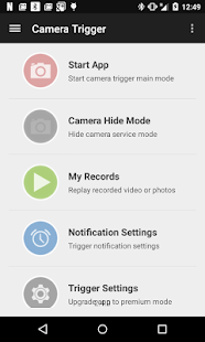 Camera Trigger is a simple motion detection application. Device camera shutter (video recording) will be triggered by objects movement on the selected screen area where user can change the area position and size of it.