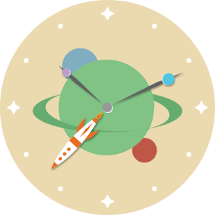 This space watch face is inspired by Disney's Tomorrowland. It features a rocket ship orbiting around planets surrounded by stars that mark the hours.