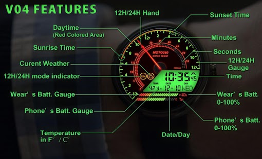 Custom watch face V04 for Moto 360 / Moto 360 2nd generation(Android Wear)