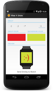 Send a smiley to your Android Wear device. Customize the smiley, background and text color.